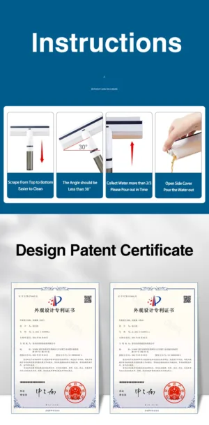 4. Wipe and Collect Water: Use the squeegee to remove excess water and collect it in the built-in box.